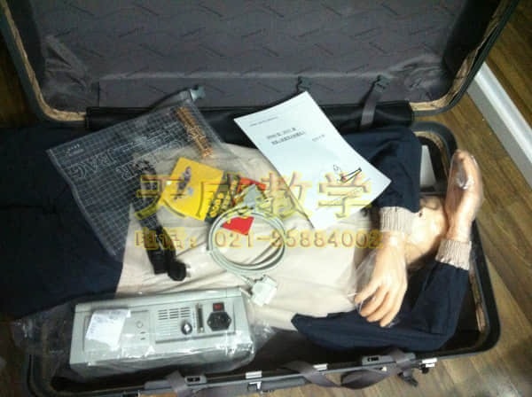 先將模擬人從皮箱內(nèi)取出,把模擬人平躺仰臥在操作臺上,另將電腦顯示器連接電源線,外接電源線從皮箱內(nèi)取出,再與人體進(jìn)行連接,將電腦顯示器與220V電源接好,即完成連線過程。